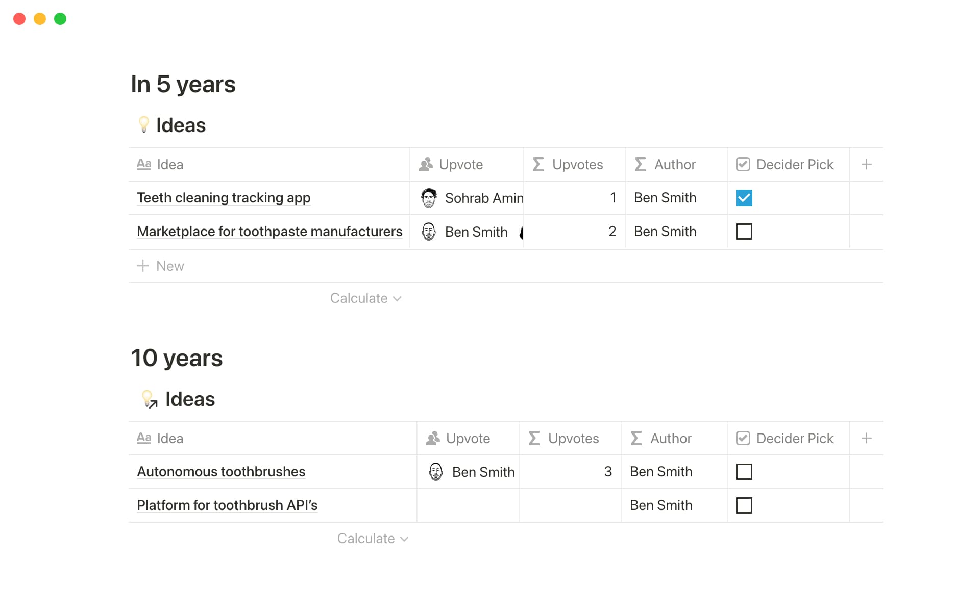 Whether you're a seed or series A startup, taking time to define your brand will help your company stand out. Merci's template, based on Google Ventures' three-hour brand sprint framework, is specifically designed for teams who are entirely remote but still want to collaborate closely on the company's position in the market. Included are several exercises for your team to brainstorm ideas, build a high-level roadmap, and define your audience — and for all of these, you can easily add and upvote ideas for streamlined discussion.