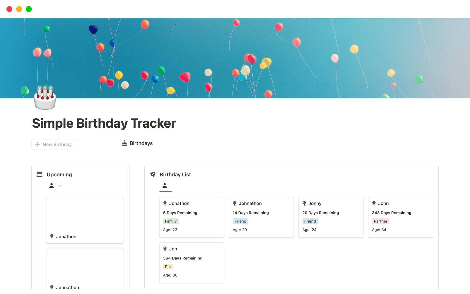 Top Birthday Tracker Templates