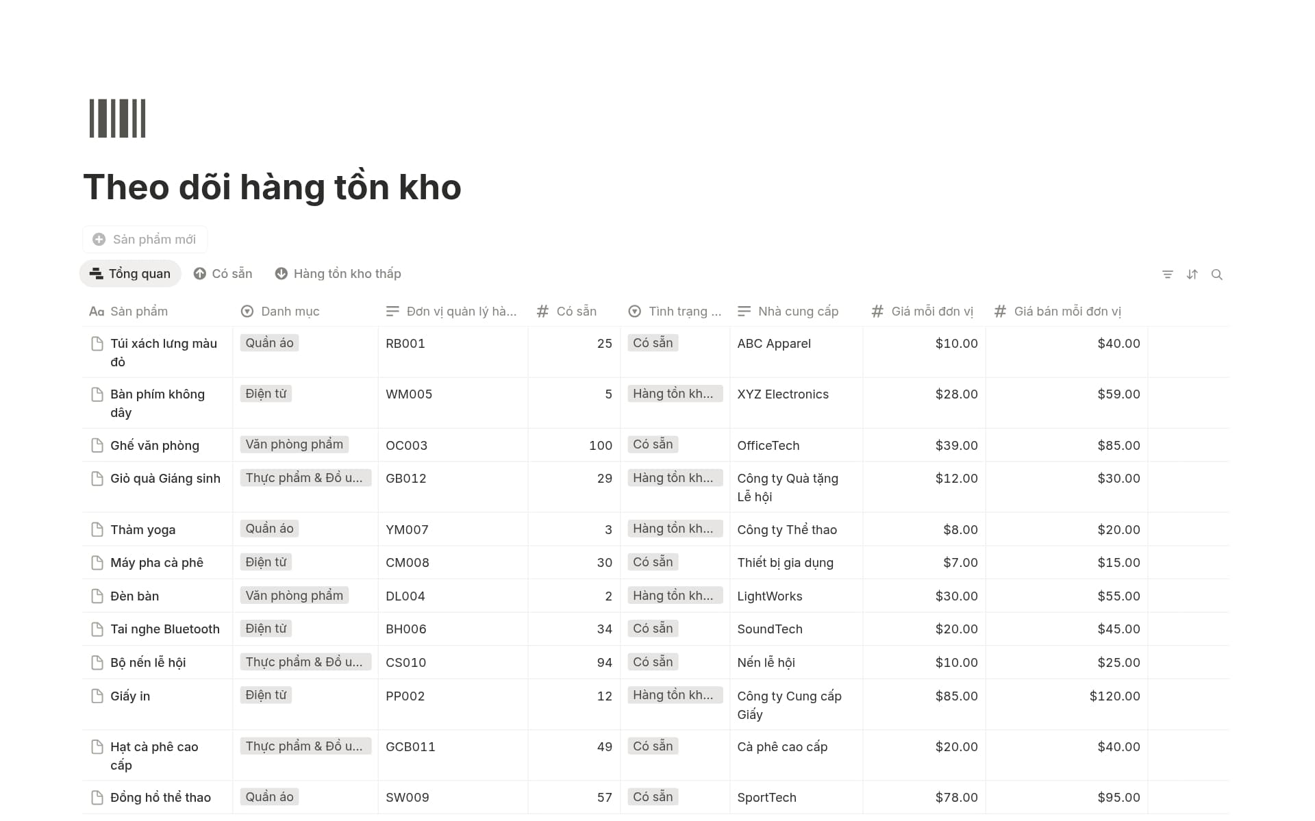 Danh mục hàng đầu